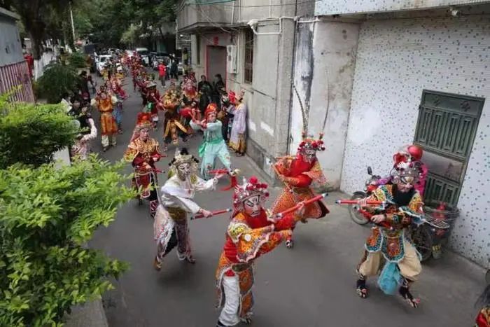 英歌舞表演高潮时,舞者动作幅度更大、力度更强,将南拳拳路套式展现得淋漓尽致,槌法刚猛,大力挥舞英歌槌,每一次敲击都虎虎生风。若有男女混合表演,“男女英歌斗舞”环节是亮点,女子英歌柔中带刚,以灵活多变的槌花和轻盈优美的舞步,与男子英歌的粗犷豪放形成鲜明对比又完美互补。同时,会加快队形变换速度,从长蛇挺进迅速变为双龙出海、四虎并驱等,舞者们在快速移动中保持整齐划一。音乐方面,鼓手加快击鼓速度,鼓点变得密集、响亮,节奏强烈有力,舞者们齐声呐喊,“哈、嘿”等声音此起彼伏,与鼓点相互呼应,观众被表演深深吸引,情绪高涨,爆发出热烈的掌声、欢呼声和喝彩声,现场热闹非凡。
