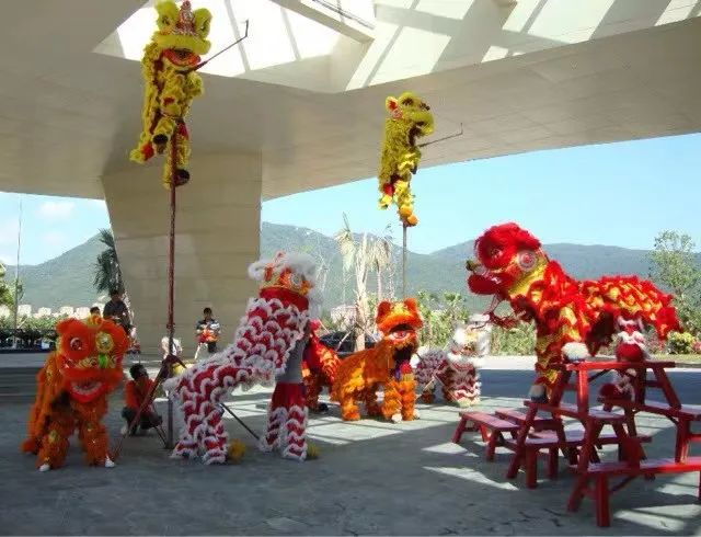 南狮的表演有很多深意,在表演中经常用大锣大鼓大钹,狮子的行为不同,声音不同,对乐器打击的力度也不同,一场表演观看下来比较恢弘大气,荡气回肠。在舞狮之前会有一种名叫点睛的仪式,点睛就是由主礼嘉宾将朱砂涂在狮子的眼睛和天庭上,意味着给予狮子灵气与生命。
