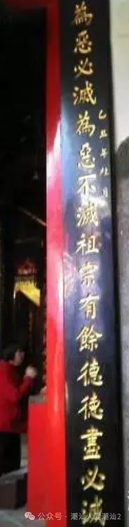 到过揭阳城隍庙的人,如果细心观察就会发现正厅两侧自古以来镌刻着这样一副劝世联:为恶不灭祖宗必有余德德尽必灭为善不昌祖宗必有余殃殃尽必昌