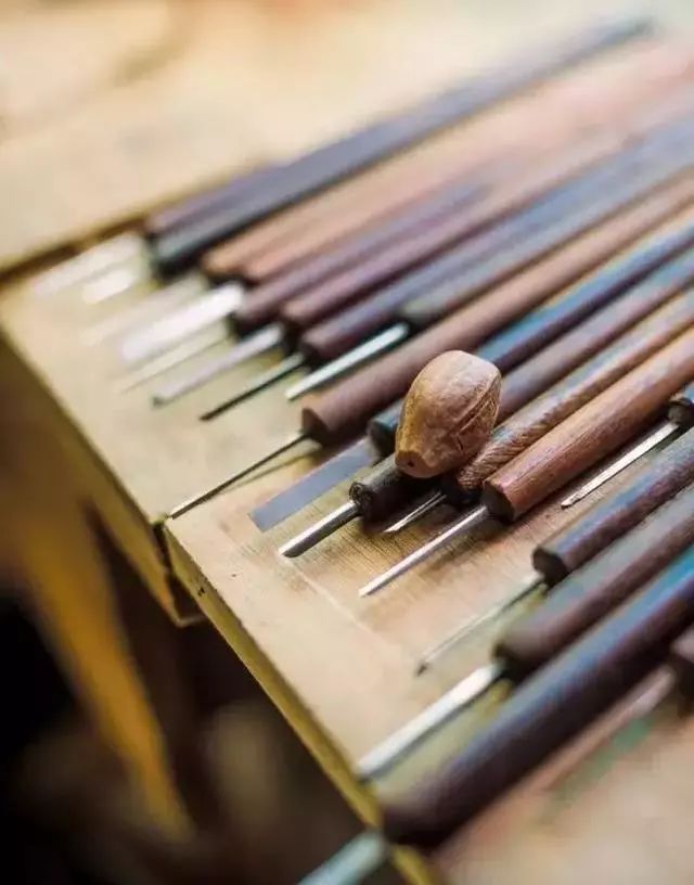 核桃雕刻时需将果核抵在一块木板上操作,最细的刀,直径还不到1毫米。一颗成品的微雕需要雕刻数万刀,一刀不对,就功亏一篑。