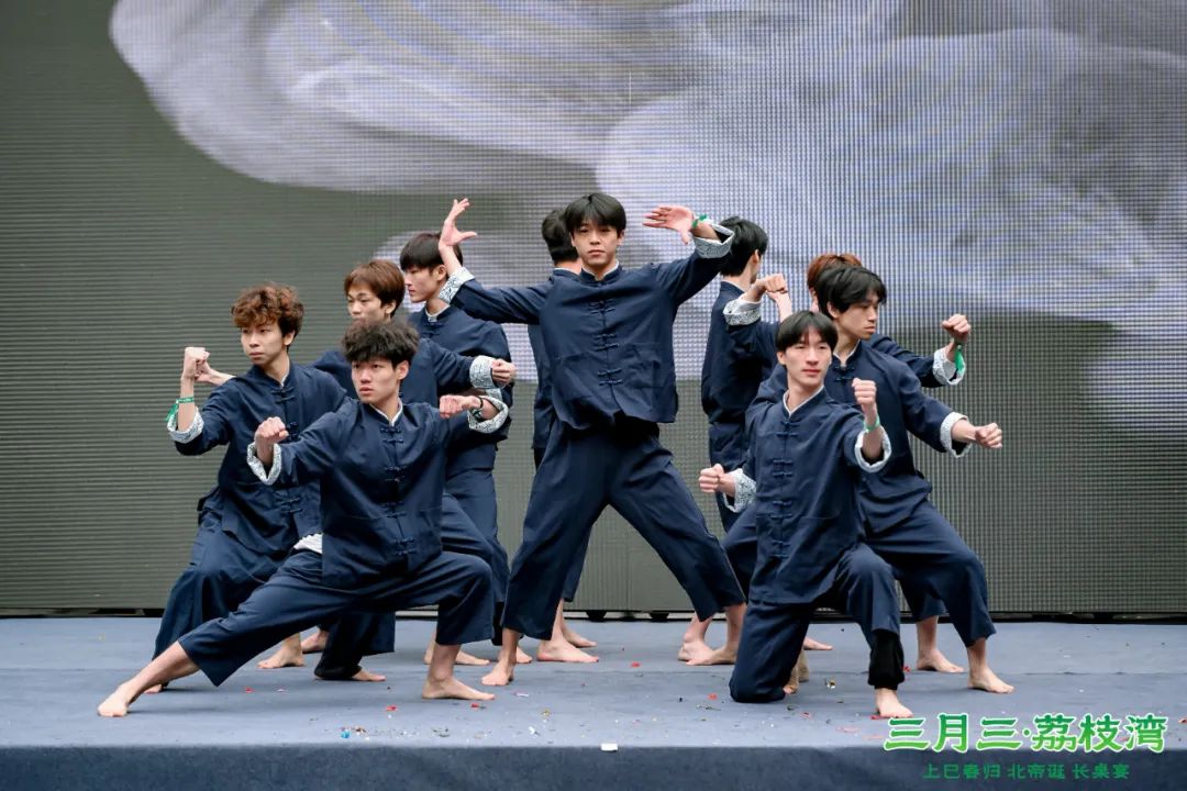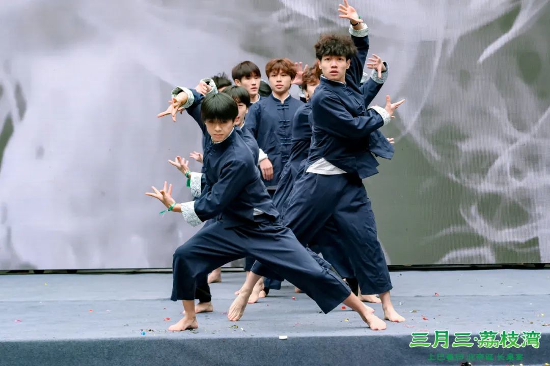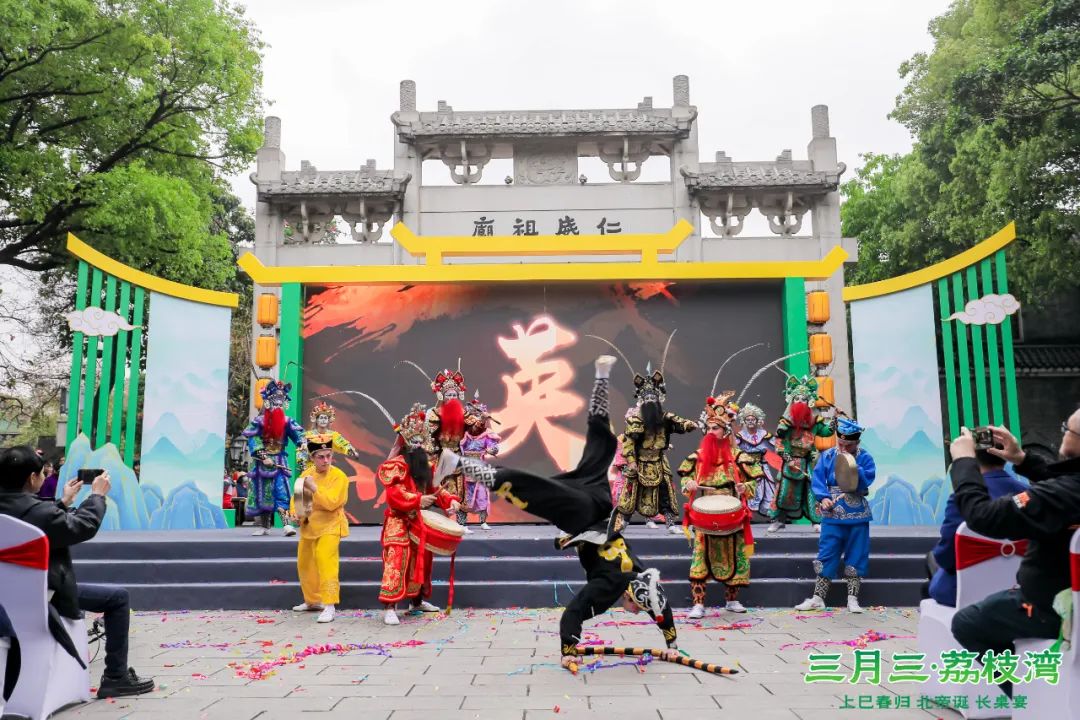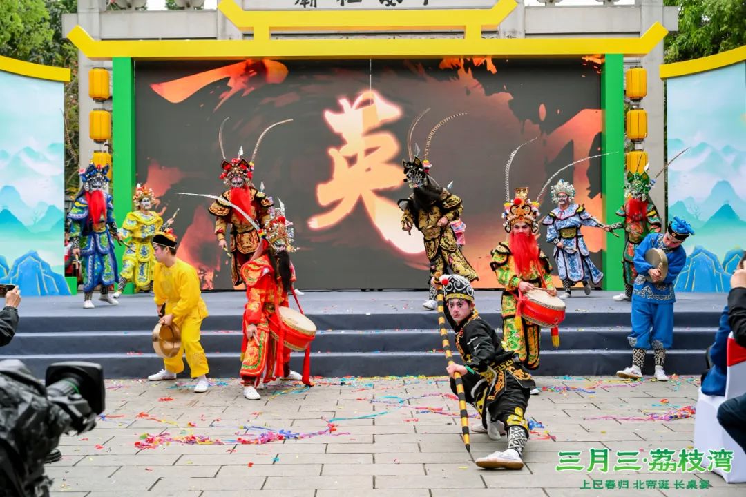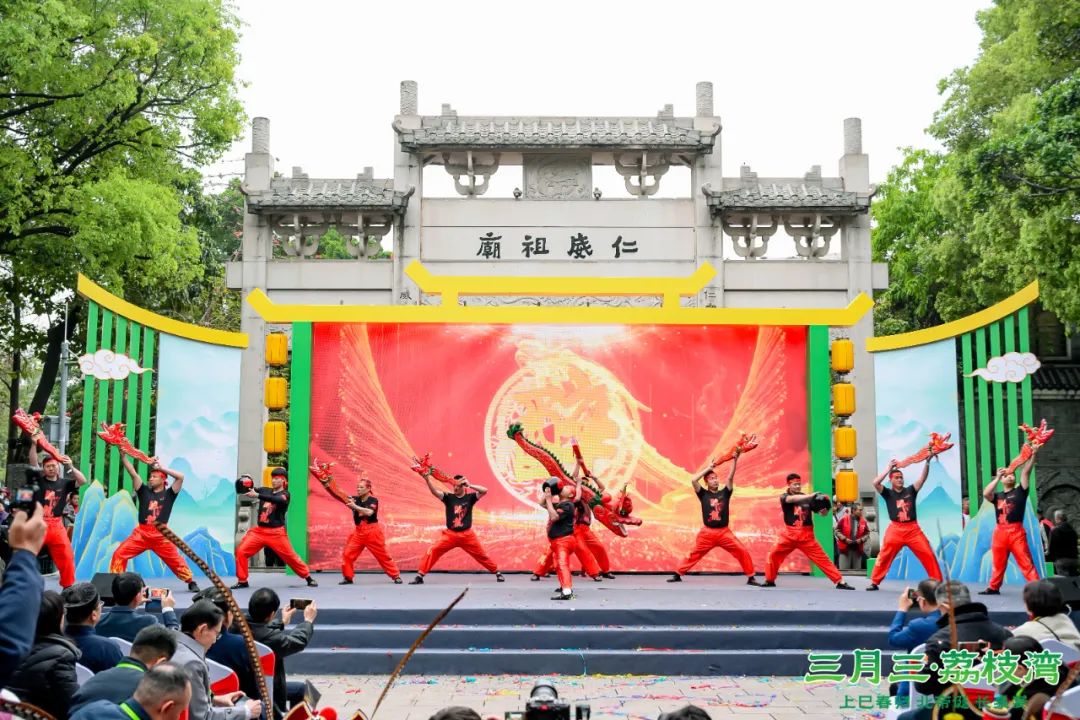 3月31日早上10点,仁威庙牌坊广场上,三月三活动启动仪式盛大开启。龙狮献瑞闹西关,泮塘村龙狮队的精彩采高青表演为现场观众带来了极具西关民俗风情的开场表演。随后,来自中山的醉龙舞、潮汕的英歌舞,以及荔湾本土的精武西关,轮番登场献艺,以一段民俗串烧表演展现岭南文化的多元与活力。“三月三,临水祓禊”,启动仪式上,依古礼行“祓禊礼”,10多位汉服佳人从文塔祈福归来,为现场嘉宾以兰草净水洗去尘埃,呈现古时祓禊场景。仪式最后,泮塘村长老们上台进行醒狮点睛及切烧猪,祈愿风调雨顺、福泽绵长。