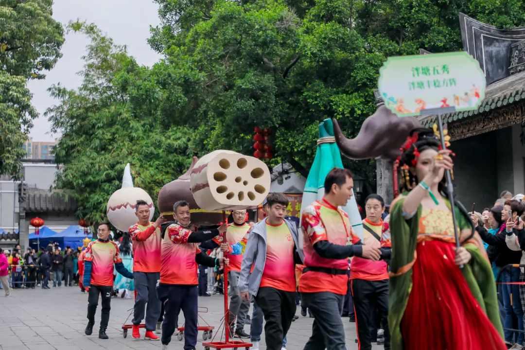 去年大受欢迎的泮塘五秀方阵今年再度出游,巨型五秀可爱鬼马的独特造型,深受市民游客的喜爱与追捧,成为当天的一道亮丽风景,无愧“食在广州”这个美誉。泮塘五秀指广州荔湾泮塘地区自古种植的五种水生作物——菱角、莲藕、马蹄(荸荠)、茭笋(茭白)、慈姑,其历史可追溯至宋代。依托珠三角水网密布的生态条件,这五类作物不仅是古代泮塘村民赖以为生的经济支柱,更衍生出马蹄糕、莲藕糖等岭南特色美食,并融入端午祭水神、中秋食藕饼等民俗,成为西关水乡文化的地标符号,至今仍以非遗身份延续着“水生为秀,沃土成珍”的农耕智慧。